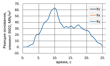 Рис. 12. Реакция Rx, Ry, Rz во времени. Упругое основание