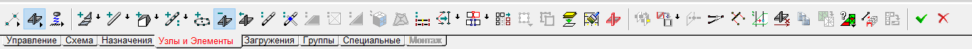 Рис. 1. Раздел Элементы инструментальной панели Узлы и Элементы