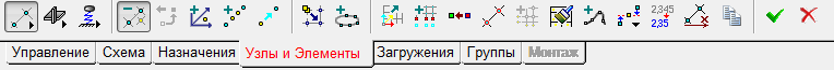 Операции с узлами вызываются из раздела Узлы инструментальной панели Узлы и Элементы.
