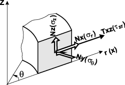 Напряжение, действующее в плоскости элемента и направленное вдоль оси r |