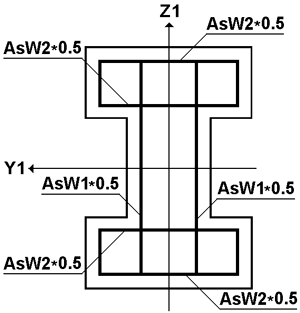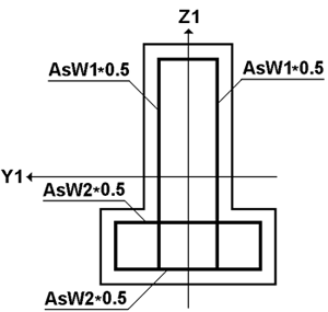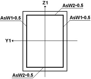 Если форма сечения такова, что может быть реализовано как симметричное, так и несимметричное армирование, то отчет содержит информацию о двух вариантах расчета.В результатах расчета величина площади поперечной арматуры, воспринимающей действие крутящего момента, печатается вычисленной для двух стержней, расположенных в сечении элемента. Таким образом, площадь одного стержня можно определить как AW/2.