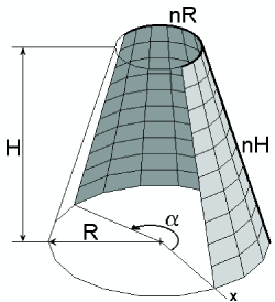 Для конуса может быть выбрана любая форма разбивки сетки или решетки из предлагаемых в окне Создание поверхности вращения.