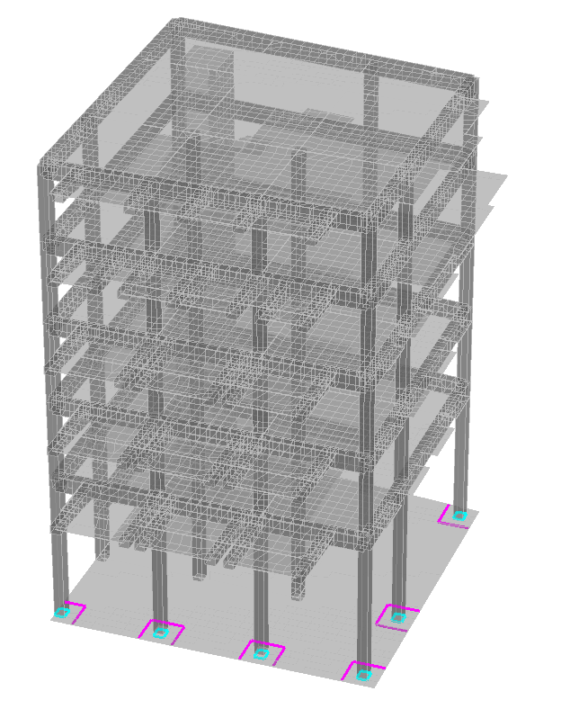 Операция используется для отображения на расчетной схеме контуров продавливания, полученных в результате расчета, а также грузовых площадок. Контуры рисуются пурпурным цветом, а площадки — голубым (рис. 1). При расчетах по СП в случае угловой или боковой колонн на экран будет выведен контур (замкнутый или незамкнутый), который соответствует большему коэффициенту использования ограничений.