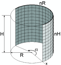 Для цилиндра может быть выбрана любая форма разбивки сетки или решетки из предлагаемых в окне Создание поверхности вращения.