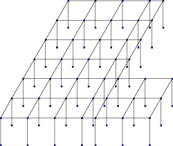 Рассмотрим несколько примеров выполнения операции копирования. В первом случае скопируем 5 раз схему-прототип (рис. 1) в направлении оси Z с шагом 3 м. Результирующая схема (развернутая для наглядности на угол 60°) показана на рис. 2. В следующем примере в качестве схемы-прототипа использована стержневая конструкция, верхний пояс которой представляет собой параболу (рис. 3).