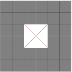 Если в диалоговом окне Генерация проекта SCAD включен маркер Жесткое тело в узле пересечения колонны и перекрытия, то при генерации конечно-элементной схемы на участках пересечения колонны и перекрытия будет активирован режим формирования сетки, моделирующей область пересечения. Область представляет собой абсолютно твердое тело, размеры которого равны габаритным размерам прямоугольника, соответствующего сечению колонны. В зависимости от положения колонны относительно края плиты область будет иметь различную конфигурацию. Например, на рисунке 1 показана конфигурация областей опирания прямоугольной колонны на плиту в середине плиты – а) и на краю – б), в), г) и соответствующие этим конфигурациям жесткие тела.