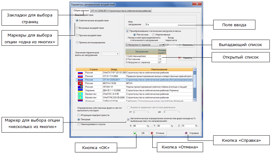Рис. 1. Элементы управления диалоговых окон