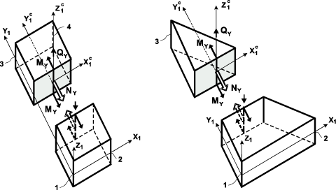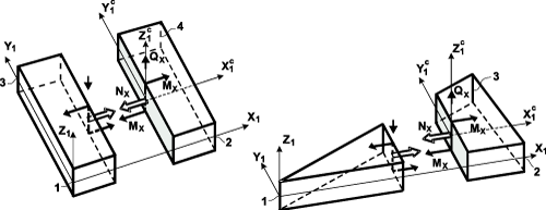Сдвиг сечения элемента в направлениях, противоположных осям X1 и Z1 |