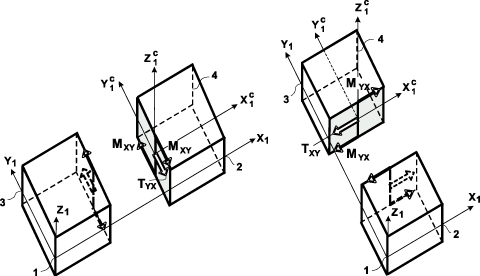 Сдвиг сечения элемента в направлениях, противоположных осям X1 и Y1 |