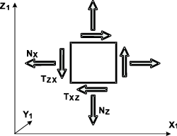 Если элемент растягивается либо сжимается только параллельно осям X1 и Z1, то всегда TXZ равно нулю, т. е. сечения, перпендикулярные осям X1 и Z1, в этом случае совпадают с главными площадками.