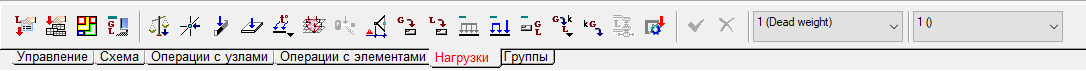 Инструментальная панель Нагрузки содержит следующий набор кнопок управления процессом задания нагрузок: