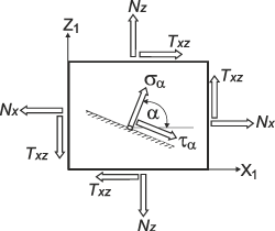 | \[ \sigma (\alpha )=N_{x} \cos^{2}\alpha +N_{z} \sin^{2}\alpha +T_{xz} \sin 2\alpha ; \] | (5) |