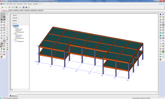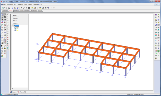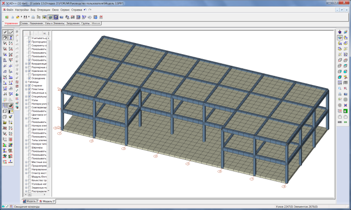 Рис. 8. Расчетная схема в препроцессоре и постпроцессоре SCAD