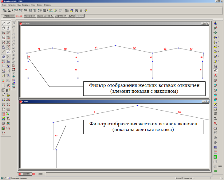 остается за пользователем. Для отображения на схеме жестких вставок, используется