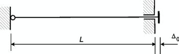 Отличительной особенностью односторонней связи являются параметры ее исходного состояния. Например, для простейшей модели стержня, способного воспринять растяжение и выключающегося из работы при появлении сжатия (рис. 2), можно учесть зазор Δ0 в односторонней связи или же преднапряжение (натяг), которое может быть интерпретировано и как отрицательный зазор, то есть Δ0 < 0.