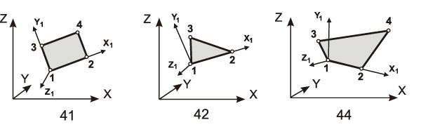 Элементы 405, 410 являются аналогами стержневых элементов, а 441, 442, 444 — элементов оболочки. У них во многом совпадает задание исходной информации, нагрузок. Совпадают вычисляемые усилия и правила знаков для них.