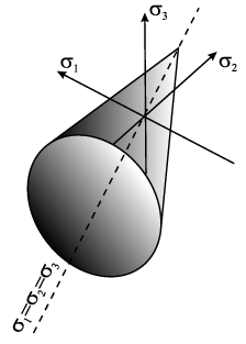 Рис. 1. Поверхность текучести: а - Друкера-Прагера, б - Гениева |