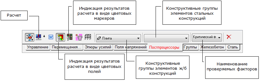 В тех случаях, когда из списка конструктивных групп выбрана конкретная группа, для нее может быть получена цветовая шкала не только значений Kmax, но и коэффициентов использования ограничений любого из предусмотренных факторов. Выбор факторов выполняется из соответствующего списка в инструментальной панели (рис. 1).