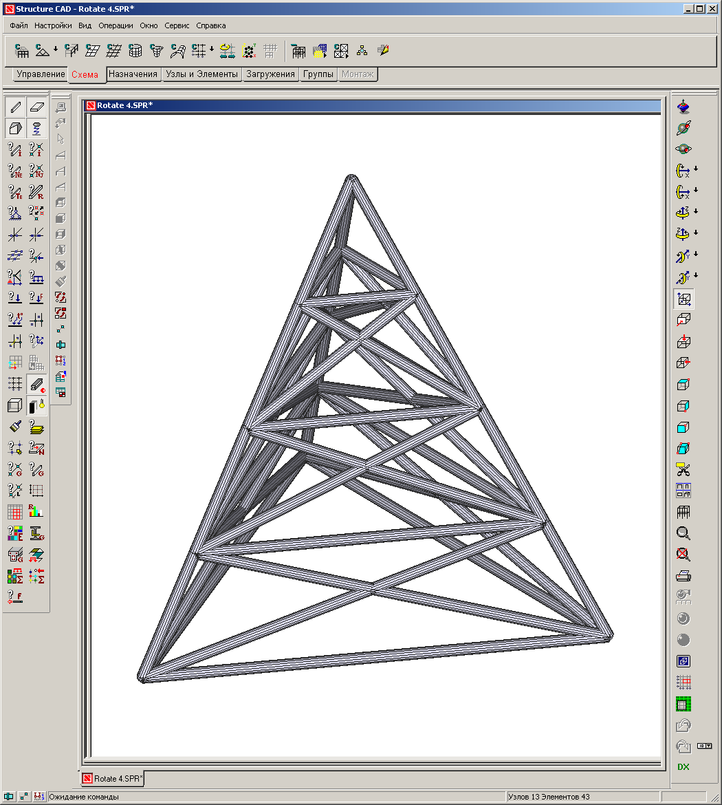 , (кнопка вызова расположена слева от поля ввода радиуса);Например, для формирования расчетной схемы трехгранной (nR = 3) пирамиды с длиной грани у основания — 4м и высотой — 4м можно воспользоваться приведенным выше приемом (рис. 2).