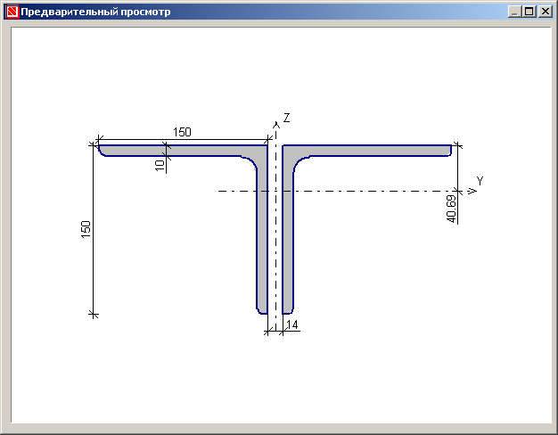 Кнопкой Геометрические характеристики вызывается окно Свойства сечения, в котором наряду с эскизом сечения в табличном виде представлены его геометрические характеристики