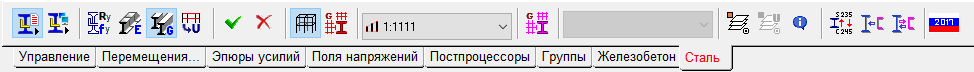 Рис. 1. Инструментальная панель Ввод данных для расчета несущей способности стальных сечений