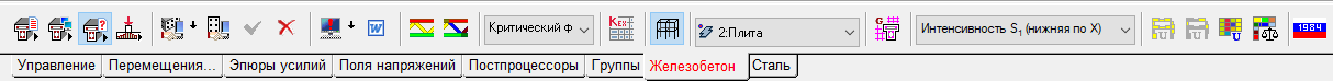 Рис. 1. Инструментальная панель для расчета несущей способности железобетонных элементов и анализа результатов