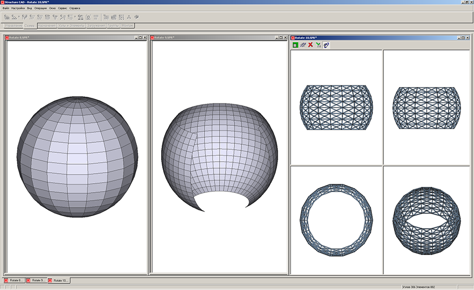 Расчетные схемы сферы из оболочек и стержней