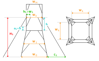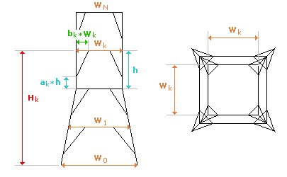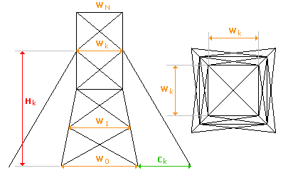 В приведенном выше списке конструкций для мачт и башен, помимо общих геометрических параметров, предусмотрена возможность добавления/удаления ярусов сооружения; задания различных жесткостей для элементов, расположенных на различных уровнях и задания связей в опорных узлах.