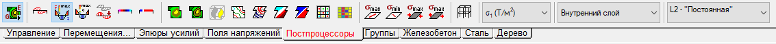Рис. 1. Инструментальная панель, режим Анализ главных и эквивалентных напряжений